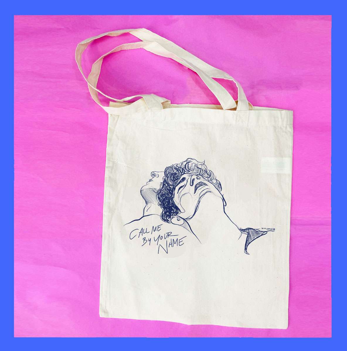 Call me by your name – Tote Bag —titulada Llámame por tu nombre en algunos países hispanohablantes— es una película de drama y romance estrenada en 2017; ganadora del Premio Óscar por mejor guion adaptado.